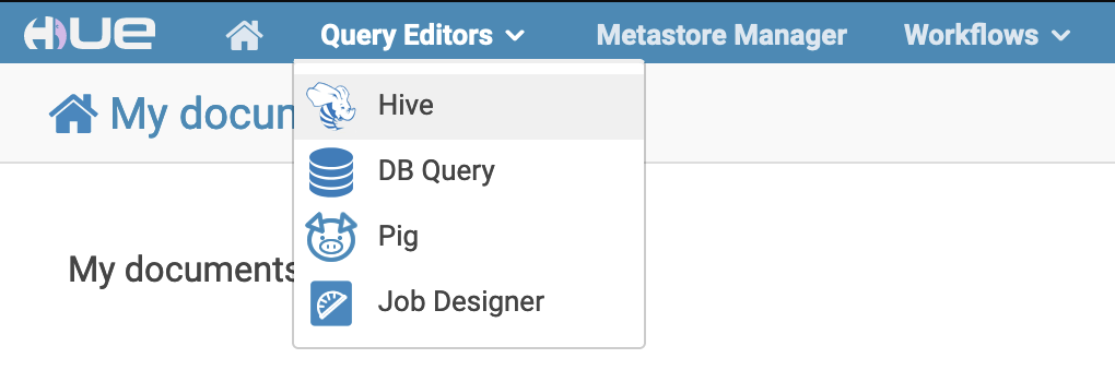$ hive hive> SHOW DATABASES; hive> !nproc; hive> dfs -ls;